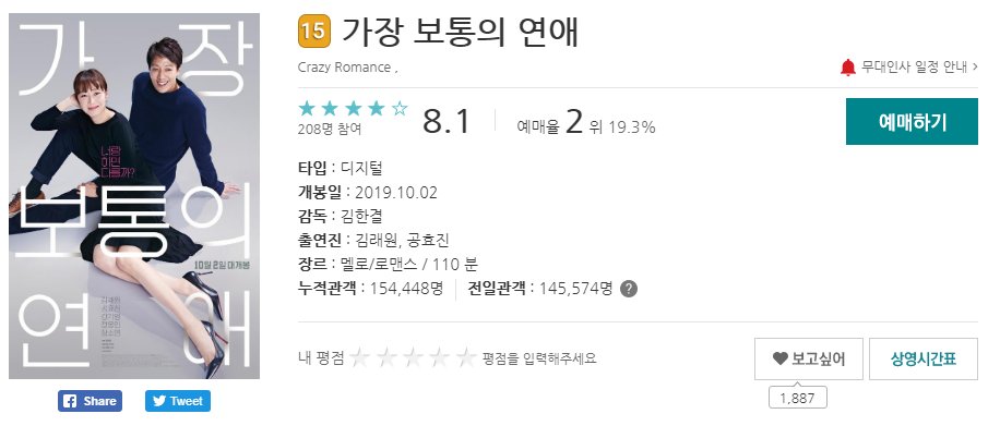 가장 보통의 연애 무대인사 일정은 10월 5일(토) 총 세타임이 진행될 예정입니다.