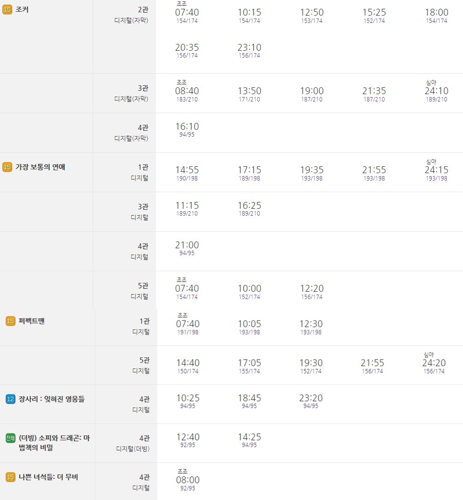 현재상영작들은 다음과 같습니다.