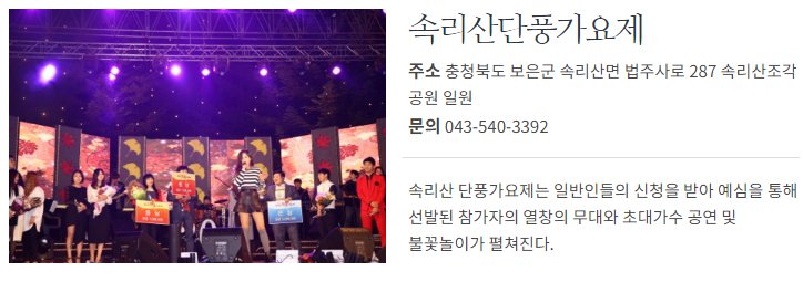이번 가을여행은 충북에서 진행되는 보은 대추축제와 속리산 단풍가요제 어떠신가요? 타지에서 방문하시는 분들을 위해서 인근 숙박업소도 소개되고 있으니 궁금한 사항은 보은관광 홈페이지를 참고하시기 바랍니다.