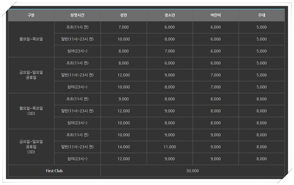 또한 상영관에 따라 관람료 차이가 있으니 참고하시기 바랍니다.