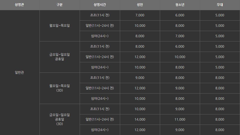 영화 가격이 주기적으로 인상이 되면서 영화 관람 비용도 만만치 않습니다.