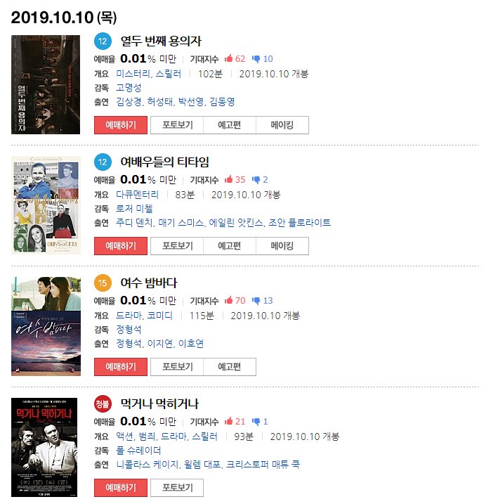 10월에는 현재 상영작들 이외에도 개봉 예정작들이 많이 나온다고 합니다.