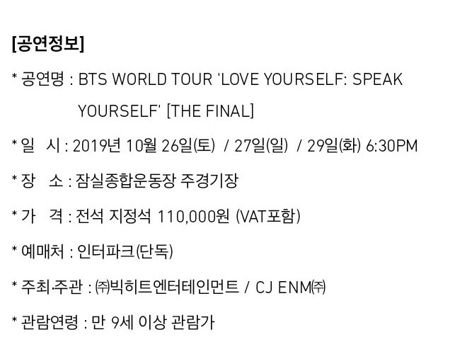 2019 BTS 콘서트 일정 안내 |