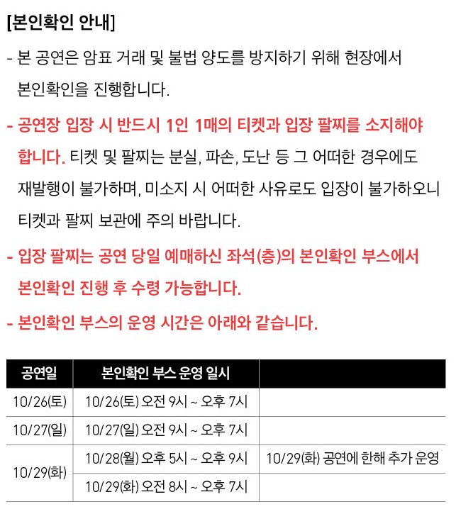 또한 유명가수의 콘서트인 만큼 암표 장사가 기승을 부리기 때문에 엄격한 티켓 양도 및 본인 확인을 진행합니다.