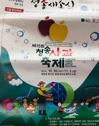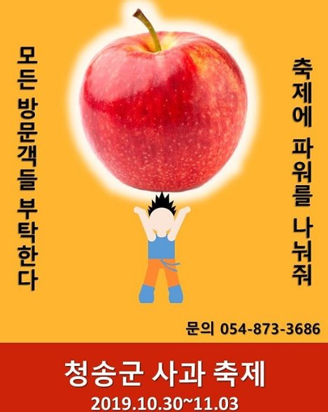 청송사과축제가 2019년 10월 30일부터 11월 3일까지 5일간에 걸쳐서 진행된다고 합니다.