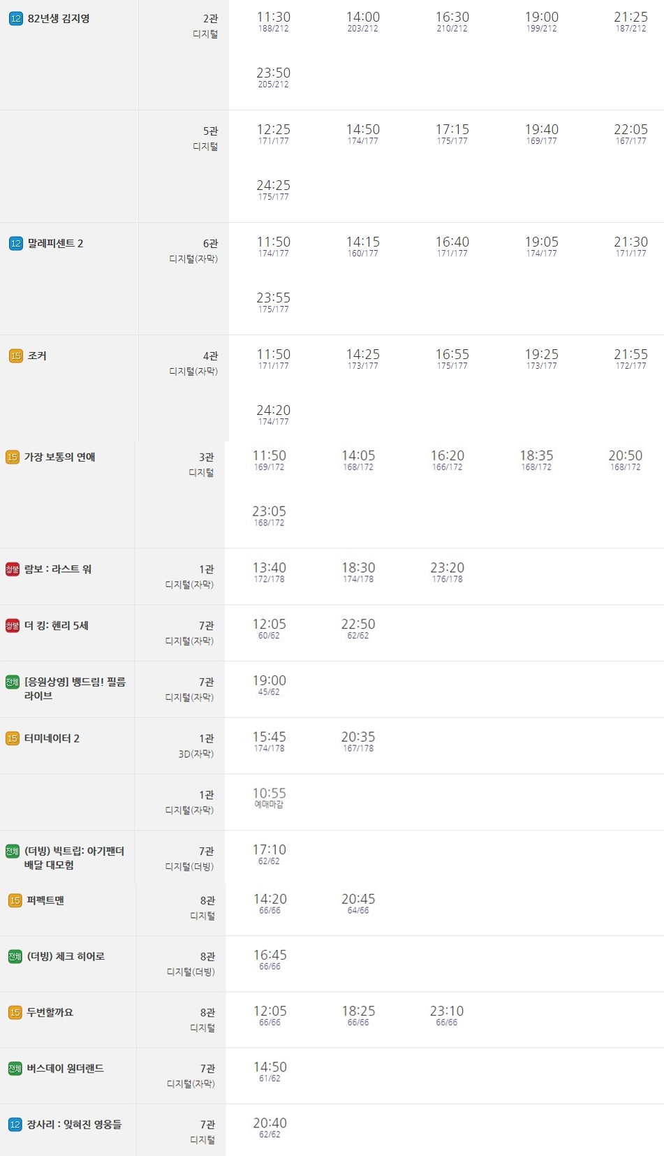 그중 현재 상영작중 예매순위를 살펴보면 82년생 김지영, 말레피센트 2, 조커 등이 상위권에 있습니다.