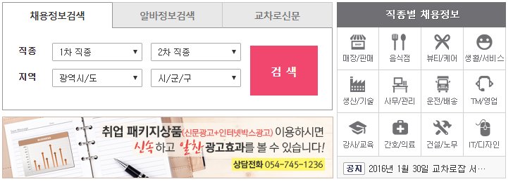그중에서도 특히 경주교차로 구인구직 카테고리는 경주지역의 직종별 채용소식을 담고 있어 지역에서 일자리를 구하고자 하는 사람들에게 1순위 취업사이트가 되고 말았다.