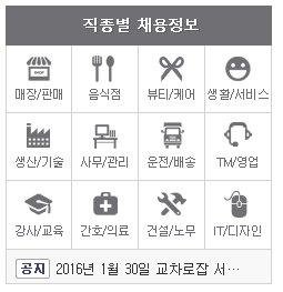 이렇듯 직종별로 구분이 되어있어 이용자 입장에서는 보다 쉽게 관련 업무를 찾아보거나 취업정보를 확인할 수 있는 것입니다.
