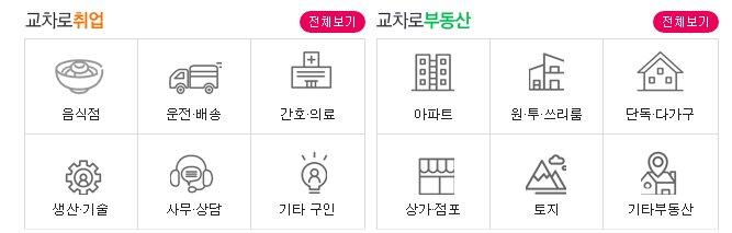 춘천 교차로 홈페이지에 들어가면 상단에 부동산, 구인구직, 자동차, 교차로 뉴스등의 카테고리가 있습니다.