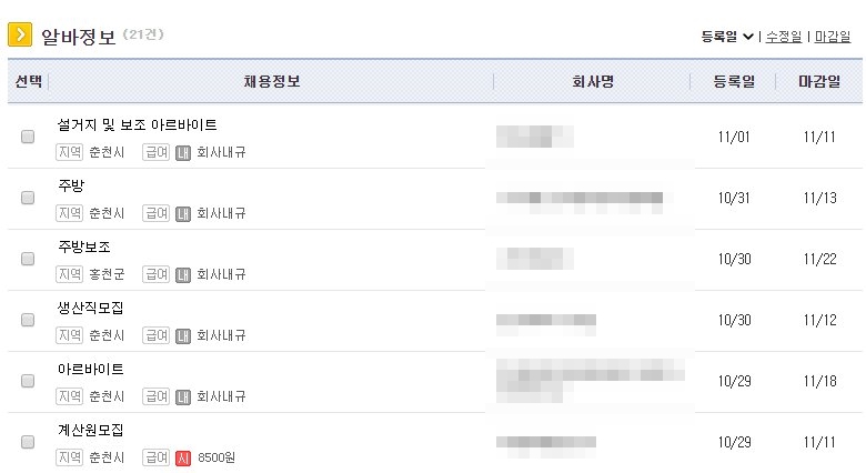 잡코리아, 사람인 같은 대형 취업 사이트의 경우 일자리가 많은 것은 사실입니다. 하지만 춘천이라는 지역에 국한되지 않고 전국의 취업정보를 다루고 있기 때문에 지역에 초점을 맞춘 춘천교차로 보다는 그 정확성이 떨어진다고도 할수 있습니다.