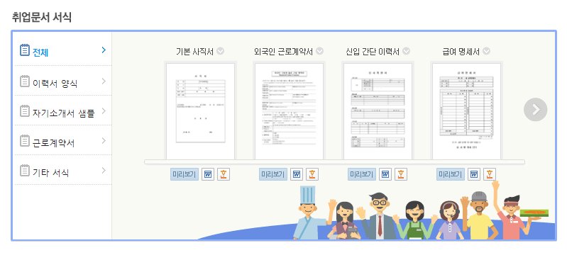 이력서 작성하는 방법이나 서류작업으로 인하여 구인구직을 망설이고 있을필요도 없습니다.