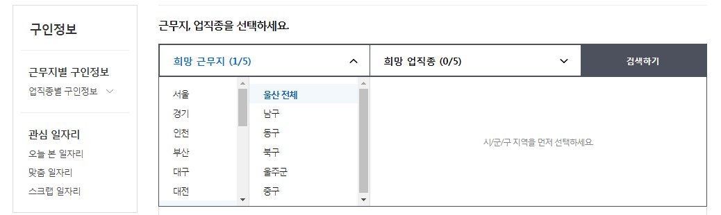 자신이 취업하고자 희망하는 지역선택시 해당 지역의 취업정보를 한눈에 확인할수가 있습니다.