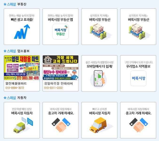 벼룩시장은 대표되는 게시판이 구인구직, 부동산, 자동차등으로 구성되어 있습니다. 모두가 사람들이 살아가는데 가장 필요한 것들중 하나입니다.