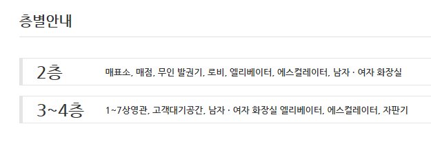 매표소와 매점 등은 2층에 위치하고 있으며 3~4층까지는 상영관으로 구성되어 있습니다.