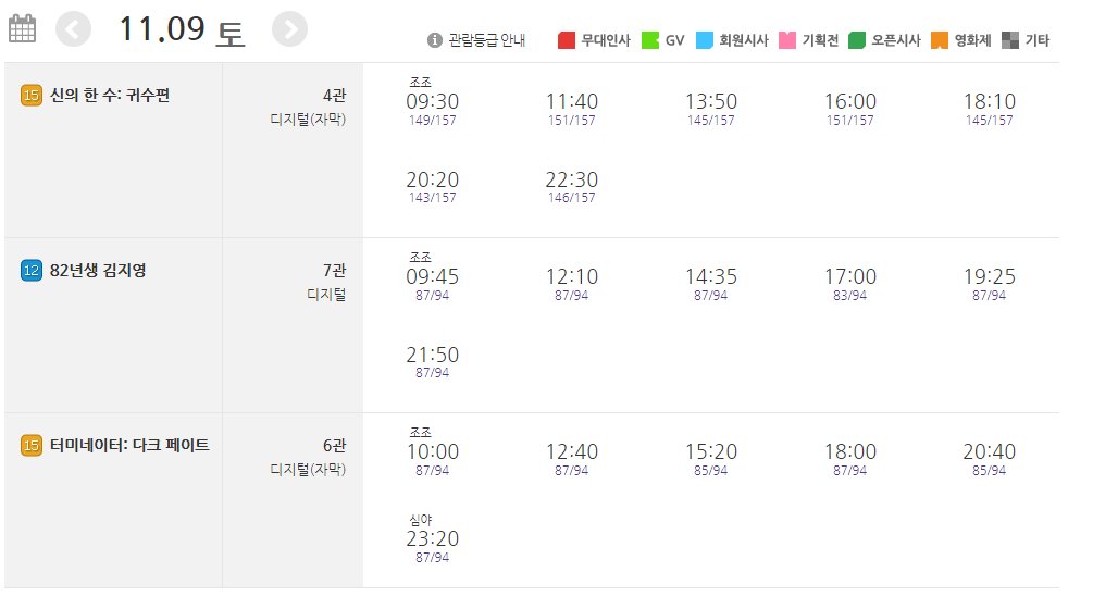 | 대구 메가박스 칠성점 상영시간표 , 할인카드 및 예매 순위안내 (0) | 2019.11.09 |