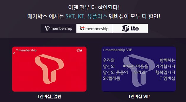메가박스도 통신사 할인이 제공되는 만큼 영화관람시 활용하는 것도 좋을 것 같습니다.