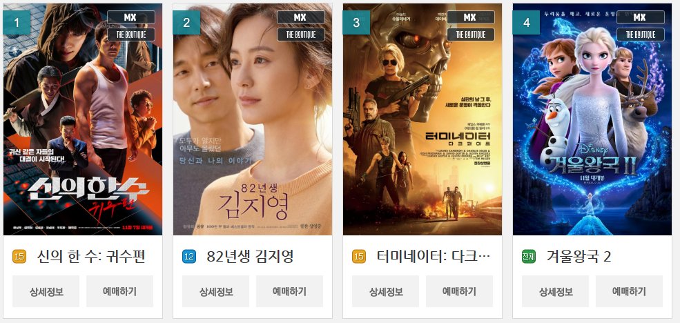 현재 개봉작들 중에서 박스오피스 예매순위 및 인기순위를 살펴보면 신의 한 수가 대봉과 동시에 예매순위 1위에 오르면서 82년생 김지영이 2위로 밀려났습니다.
