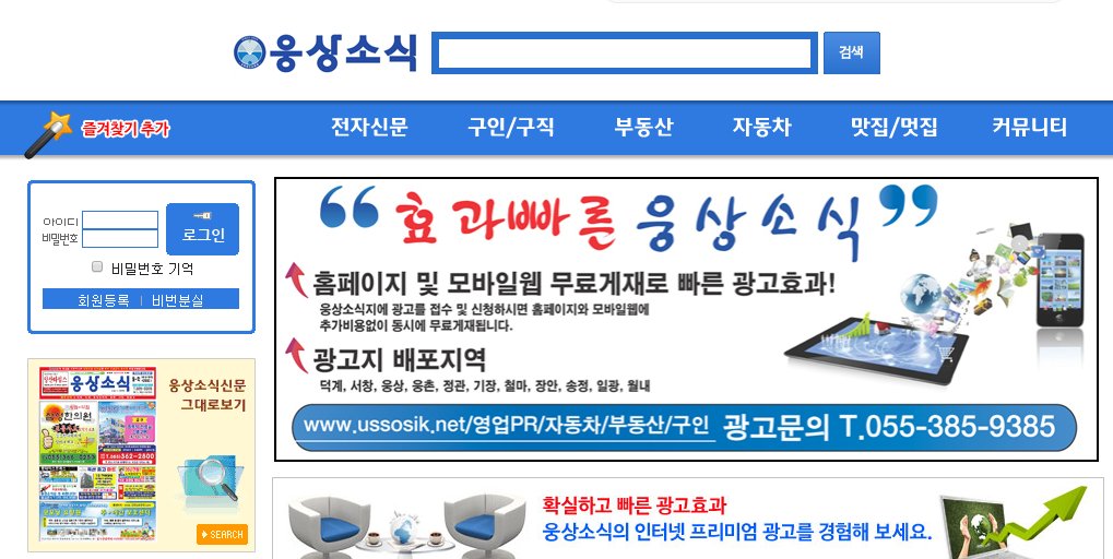 웅상 소식 홈페이지에 들어가면 웅상소식 구인구직 정보는 물론 해당 지역에서 일어나는 다양한 소식을 접할 수 있다는 점이 장점이다.