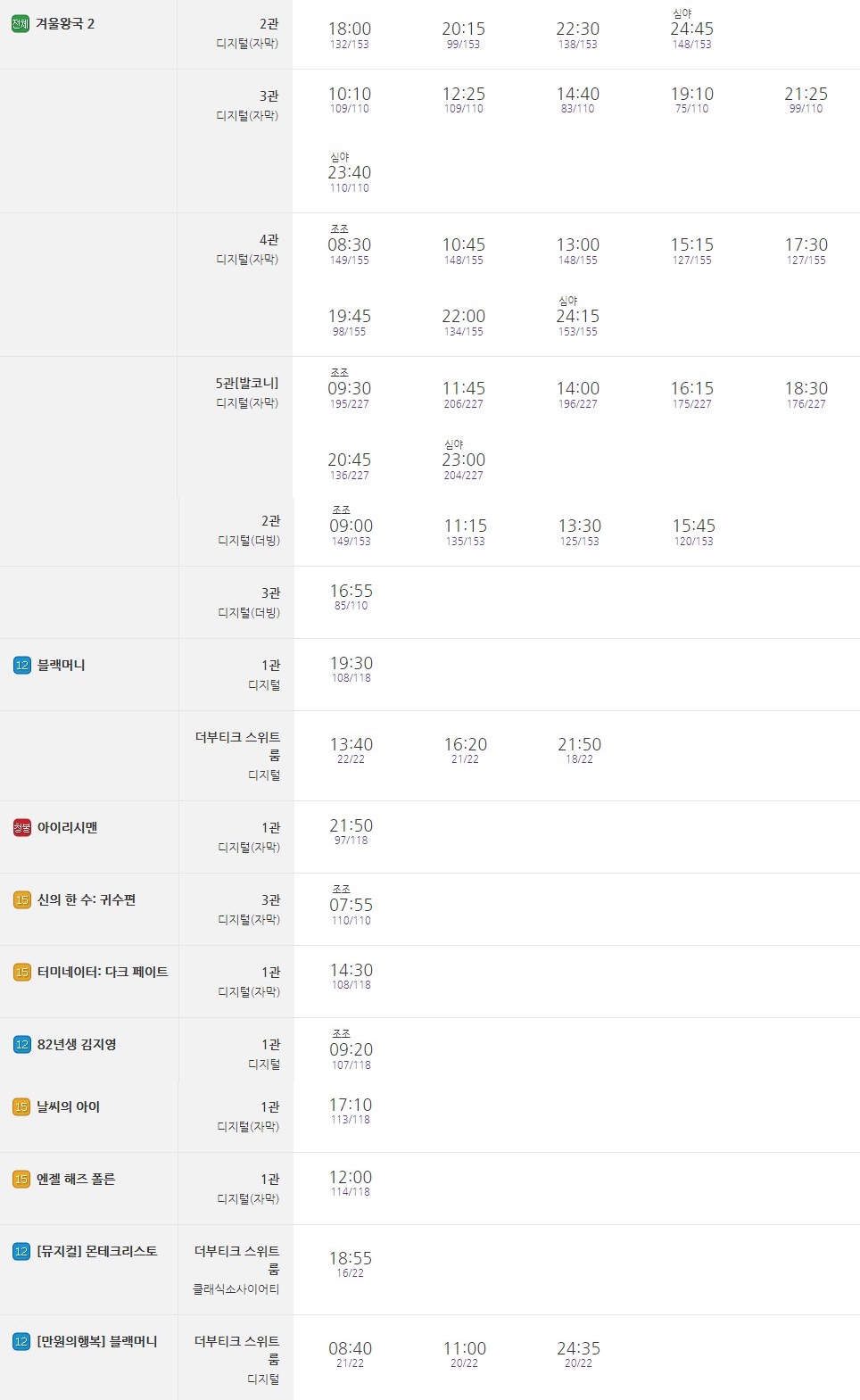 메가박스 상영시간표의 경우 매일마다 업데이트되고 있습니다. 자세한 날짜별 상영시간표가 궁금하신 분들은 메가박스 홈페이지를 확인하시기 바랍니다.