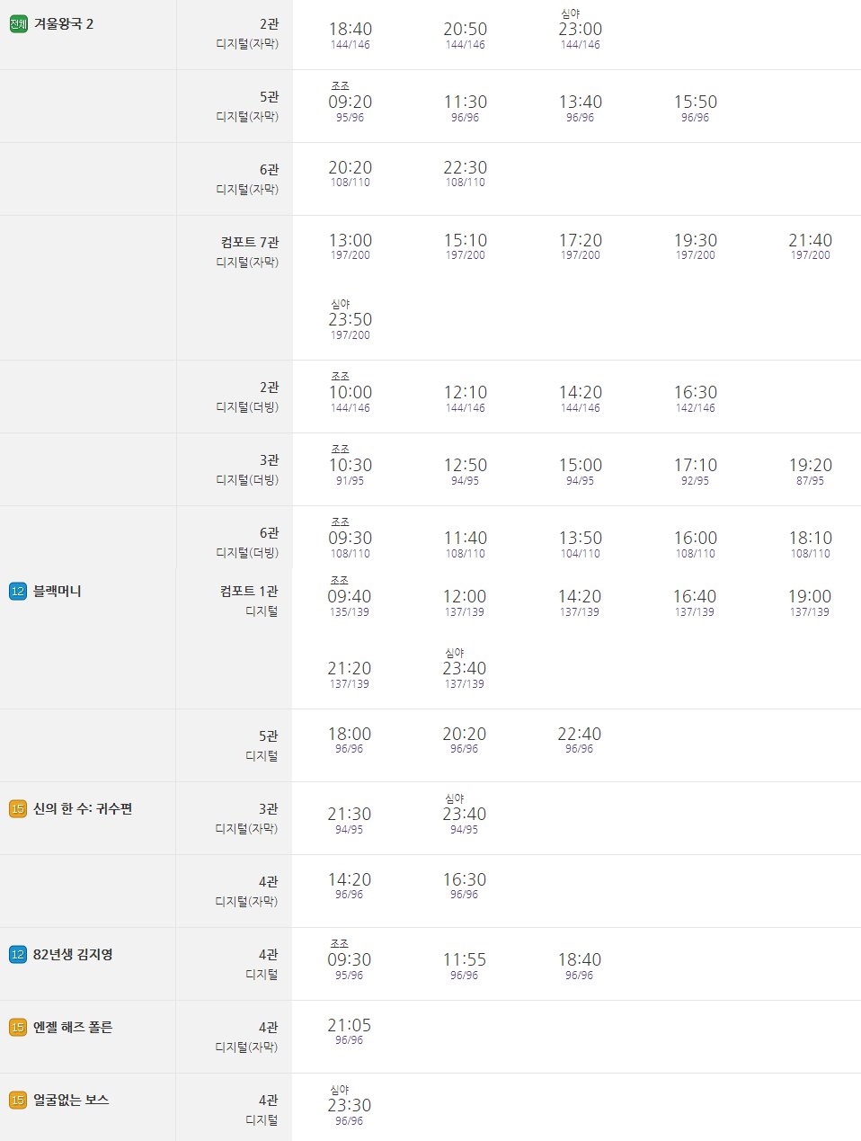 그 인기만큼 운정 메가박스 상영시간표를 살펴보면 평일임에도 불구하고 오늘 하루 상영 예정만 총 24번 예정되어 있습니다.