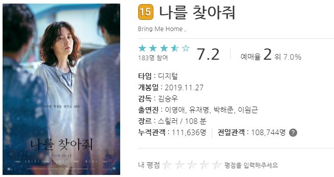 14년 만에 영화로 복귀한 이영애 씨 주연의 나를 찾아줘는 잃어버린 아들을 찾기 위해서 찾아다니는 엄마의 모습을 그린 영화입니다.