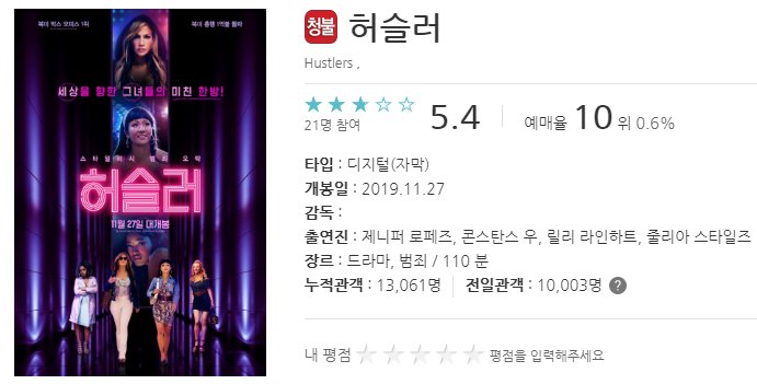 그중 제니퍼 로페즈 주연의 허슬러와 재난을 소재로 한 크롤, 이영애 씨 주연의 나를 찾아줘 가 많은 관심을 받고 있다고 합니다.