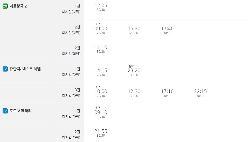 삼천포 메가박스 상영시간표를 살펴보면 현재 3개의 상영관임에도 불구하고 다양한 영화들이 상영 중으로 소개되고 있다.