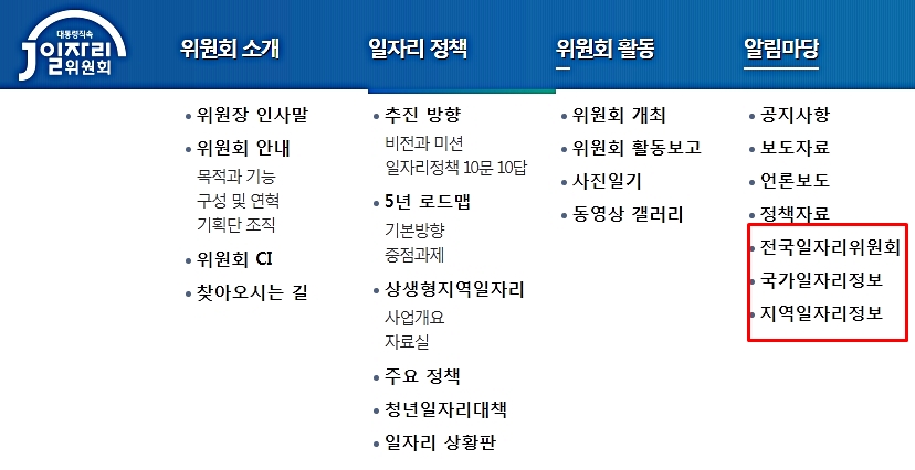 대통령 직속 일자리위원회는 대통령이 공약으로 내건 일자리 창출을 체크하기 위하여 운영되는 사이트이다.