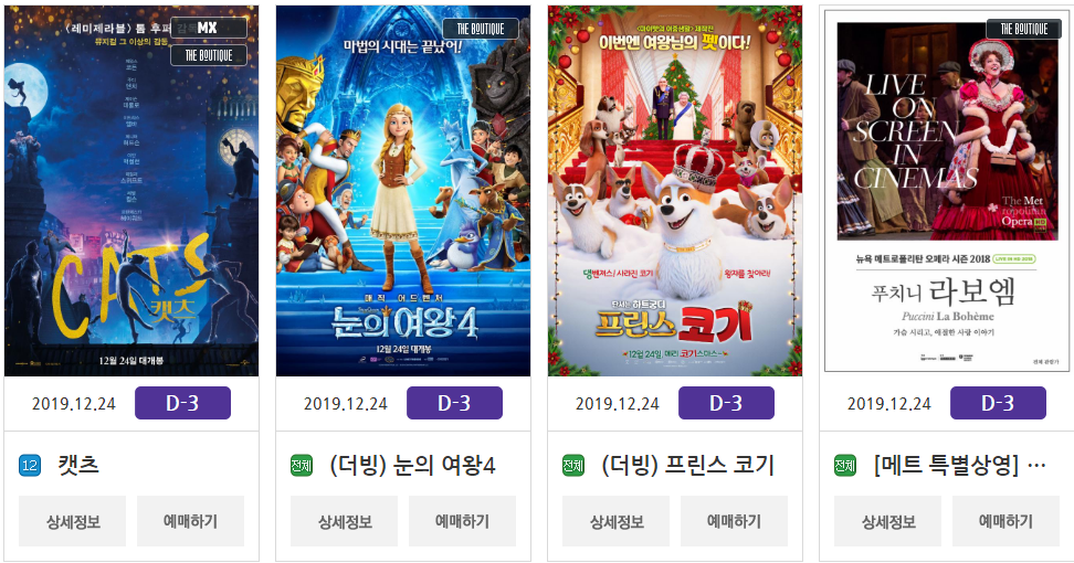 현재 개봉작 이외에도 크리스마스를 맞이하여새롭게 개봉하는 영화들이 많이 있습니다.