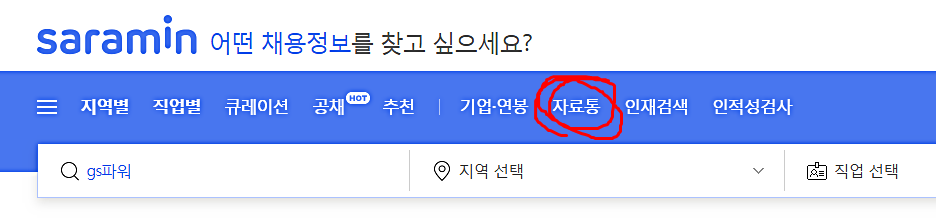 사람인 글자수세기 프로그램은 상단 카테고리에 있는 자료통을 통해서 접속할 수 있다.