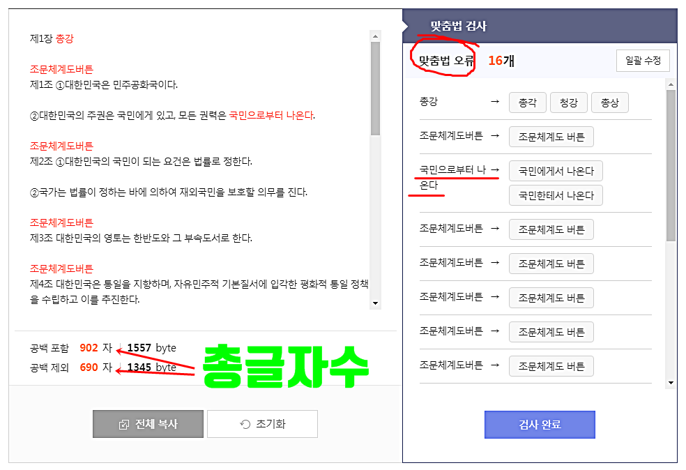 단 한 번의 클릭으로 글자 수는 물론, 공백을 제외한 글자 수부터 맞춤법까지 한 번에 확인이 가능하기 때문이다.