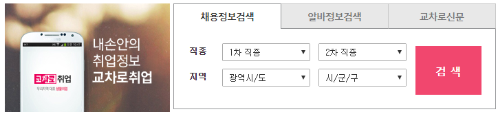 특히 직종별로 구분이 되어있는 채용정보는 새로운 직업으로 이직을 하고자 하는 사람들에게 보다 손쉽게 일자리를 구할 수 있는 정보를 제공하고 있다.