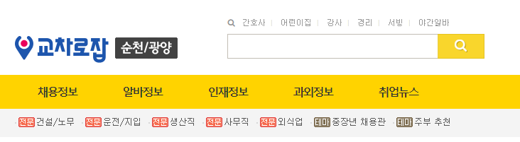 실제 순천교차로 구인구직 게시판을 살펴보면 각종 채용정보부터, 알바정보, 인재정보, 과외 정보, 취업뉴스 등 취업에 대한 여러 가지 정보를 제공하는 것을 알 수 있다.