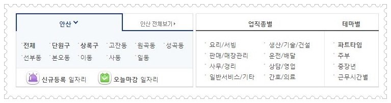 안산벼룩시장 홈페이지에 들어가면 구인구직 정보바로가기를 통하여 해당 위업정보 게시판으로 이동이 가능하다.