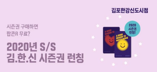 2020년 5월 31일 까지 시즌권을 구매하면 보다 저렴한 가격에 영화 및 팝콘까지 구매할 수 있다고 하는 평소 자주 가시는 분들이라면 눈여겨보시는 것도 좋을 것 같습니다.