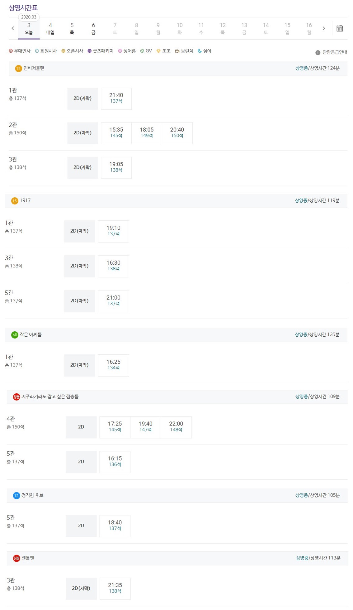 | 메가박스 부산극장 상영시간표 현재상영작 안내 (0) | 2020.03.06 |