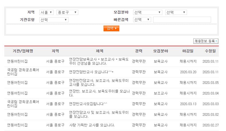 경력자부터, 초보자, 원장, 주임교사, 정교사, 보육교사, 종일반교사, 방문교사, 보조교사 등 채용직군도 정말 다양하게 올라오고 있는 것 또한 큰 장점이라 할 수 있습니다.