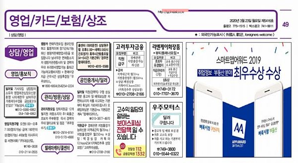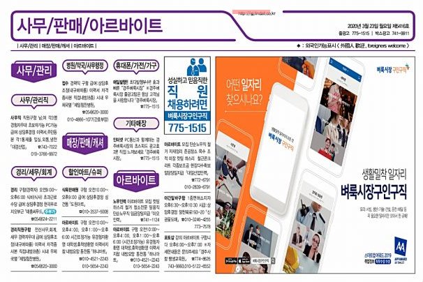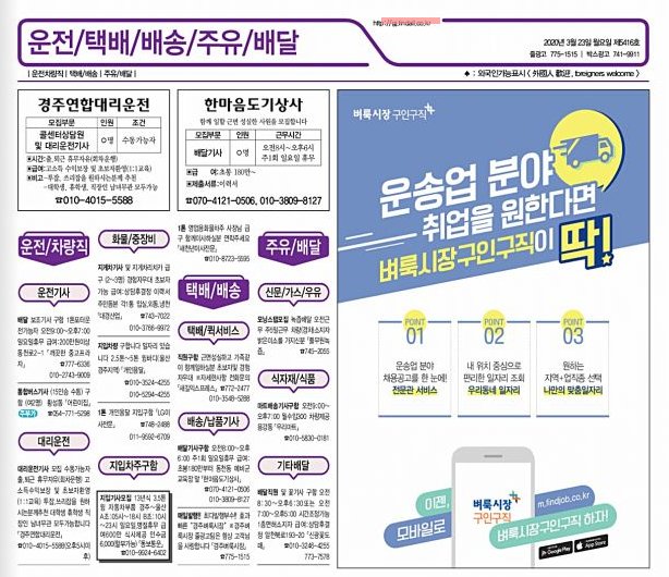 종이신문으로 보기에는 글씨가 작아서 보기가 다소 힘든점도 있는데요 앱을 통해서 확인하시거나 직접 홈페이지에 방문하시면 직종별로 깔끔하게 정리가 되어 있는 만큼 온라인을 통해서 확인하는 것이 훨씬 수월하다고 합니다.