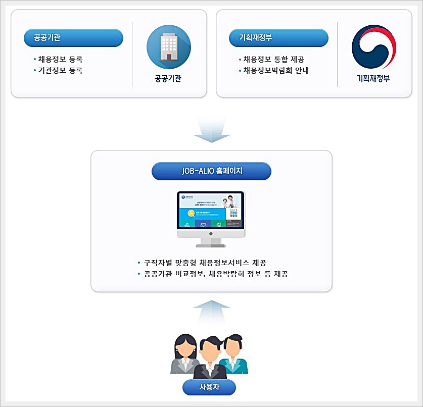 정부에서  운영하는 잡알리오 홈페이지는 다음과 같은 기능을 제공하고 있습니다.