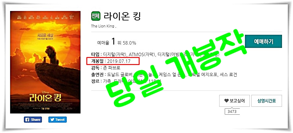 제일 먼저 소개할 영화는 오늘 개봉한 최신작입니다. 바로 라이온 킹입니다.