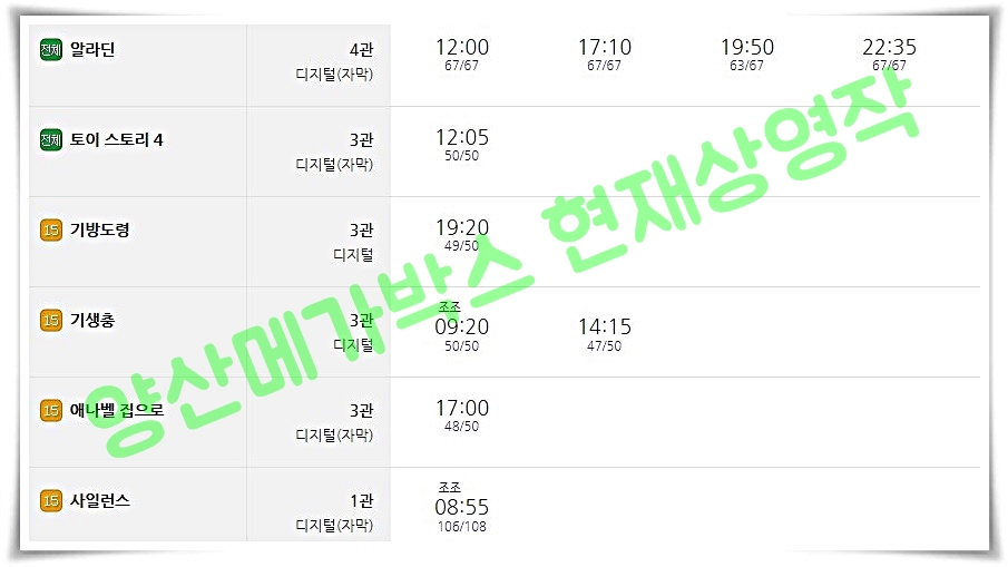 이외에도 양산메가박스 상영시간표를 보면 인기 있는 영화들이 상영 중에 있습니다.