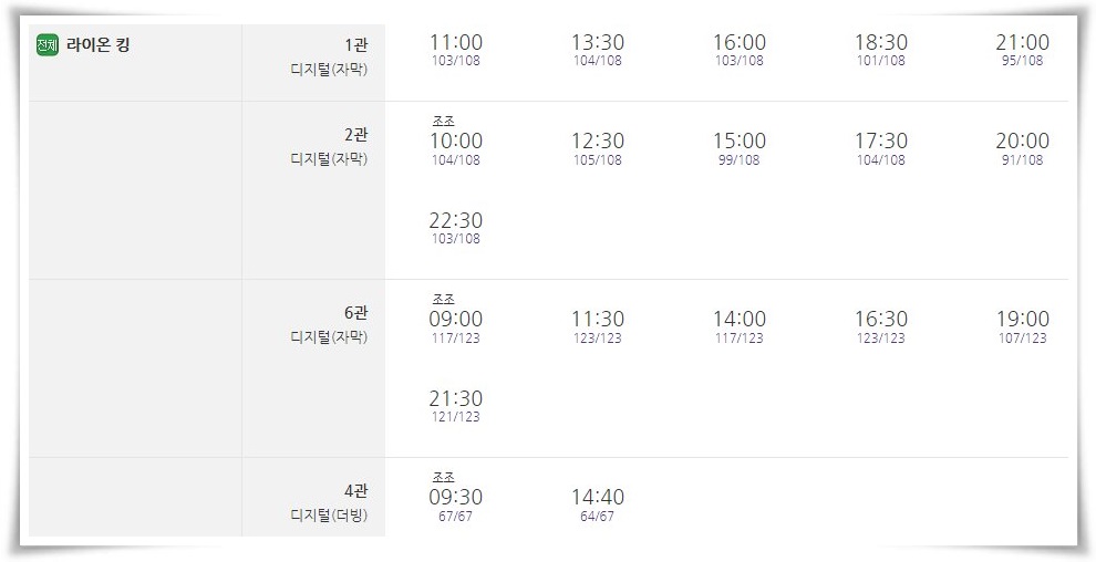 메가박스 상영시간표의 경우 매일마다 업데이트되기 때문에 자세한 시간표 확인은 홈페이지를 참고하시는 것이 좋습니다.