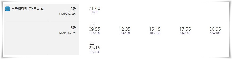 개봉 당일만 총 19편의 상영이 예정되어 있습니다. 예매율 1위를 달리면서 스파이더맨의 인기를 추월하고 있습니다.
