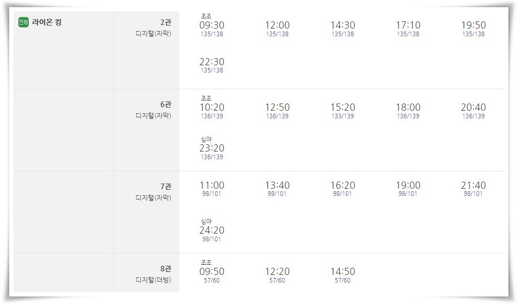 다양한 장르의 영화들이 상영하고 있어서 영화를 관람하기에 너무나 좋은 것 같습니다. 최신 개봉작들을 살펴보면 디즈니가 만든 라이온 킹이 가장 눈에 띄는 것 같습니다.