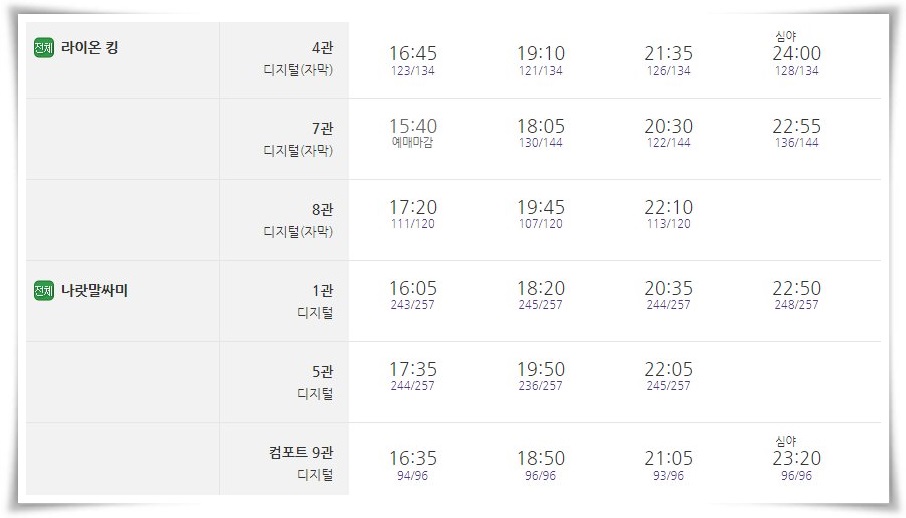 현재 라이온 킹에 이어 영화 예매율 2위를 달리고 있습니다. 영화 상영시간은 109분으로 조금은 짧은 감이 있는 것 같습니다.