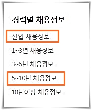 바로 경력별 채용정보 카테고리 입니다.