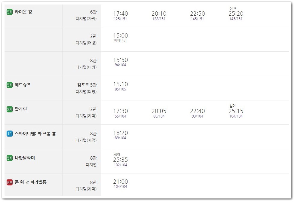 최근 개봉작 이외에도 다양한 영화들이 현재 상영 중입니다. 라이온 킹, 나랏말싸미, 알라딘 등 꾸준히 사랑받고 있는 영화들이 있습니다.