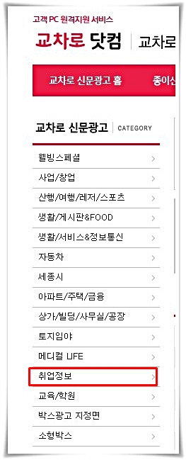 대전교차로 구인구직 정보는 교차로 신문광고 카테고리란에 있는 취업정보 페이지에서 확인할수 있다.