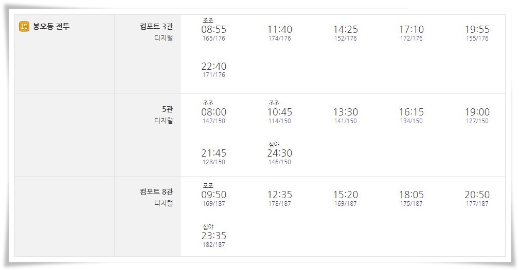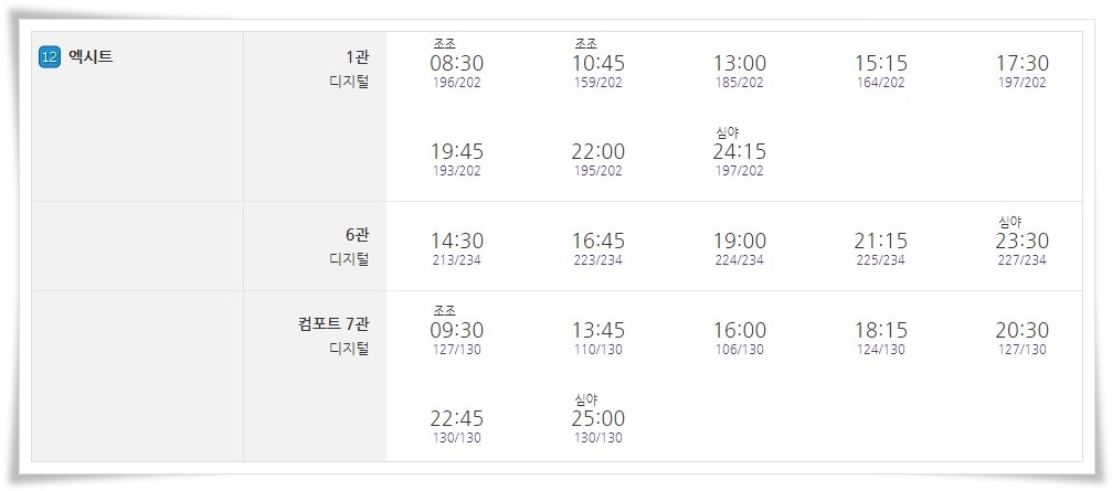 대전 메가박스 상영시간표를 보면 오늘 하루만 총 20번의 상영이 예정되어 있습니다.