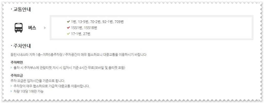 동탄 메가박스 주차장은 지하 1층부터 5층까지 이용할 수 있습니다. 건물에 비하여 주차공간이 협소하기 때문에 가급적 대중교통을 이용하는 것이 좋습니다.